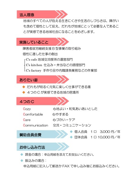 口座名義 特定非営利活動法人C’sコミュニティ理事長 津田祐子